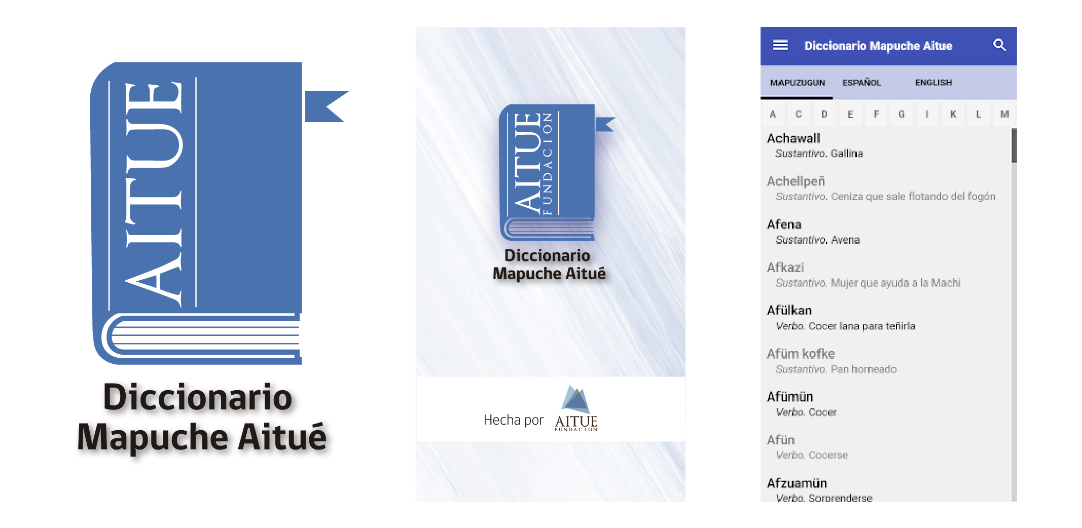 Se trata de un diccionario digital, disponible de forma gratuita para sistemas Android e iOS, que cuenta con más de 1.100 palabras, las cuales están traducidas en las tres lenguas, con fotografías y audio para practicar su fonética. El contenido fue desarrollado y creado por el equipo de cultura de la Fundación Aitue, encabezado por el Lingüista Mapuche, Necul Painemal.