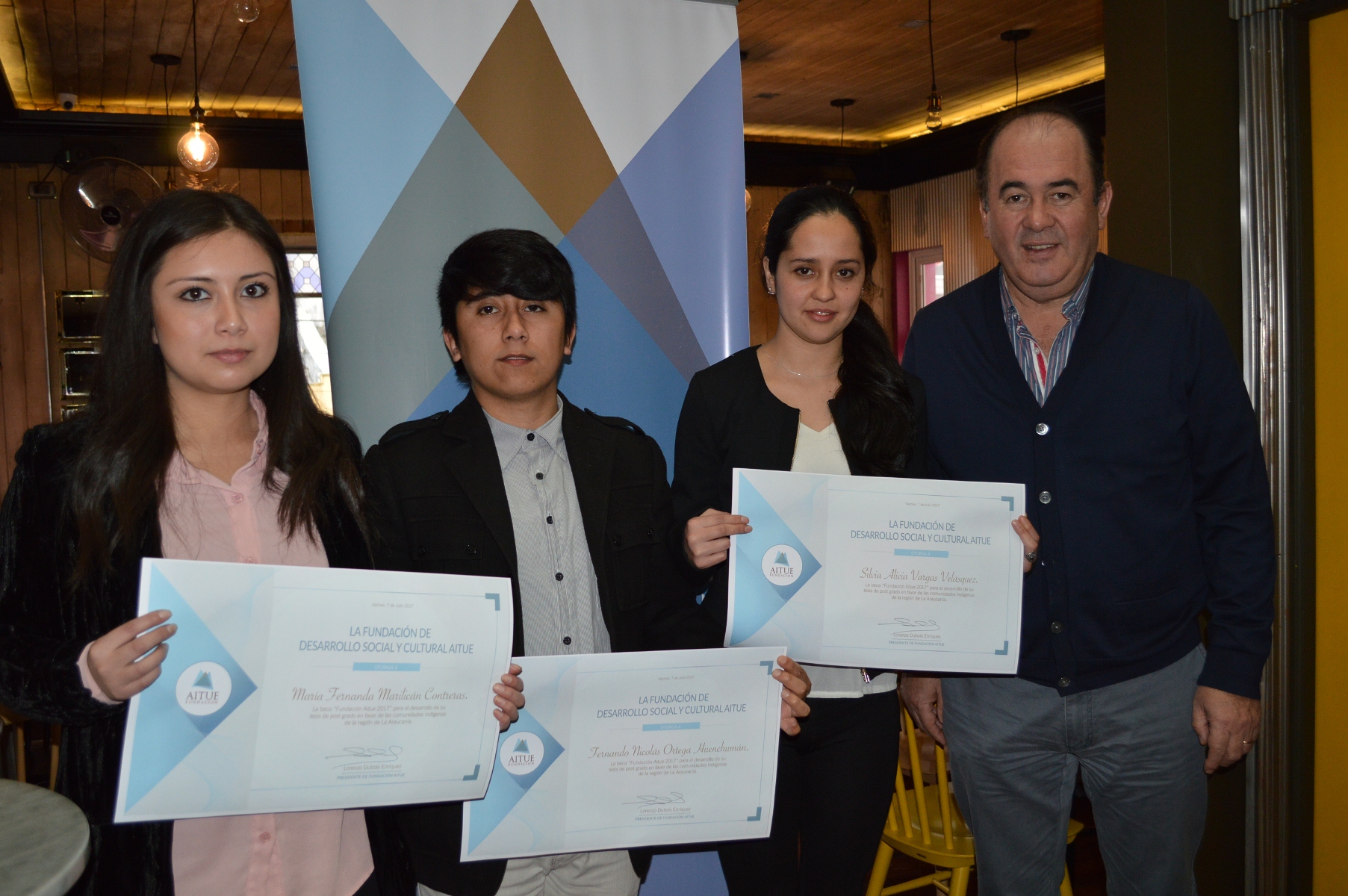 Este año la Beca Fundación Aitue 2017 fue otorgada al proyecto “Asociación entre la Competencia Intrcultural y Clima Social Escolar en la comuna de Quepe”, desarollado por María Fernanda Marlicán, Fernando Ortega y Silvia Vargas, alumnos de la carrera de Psicología de la Universidad Santo Tomás de Temuco.